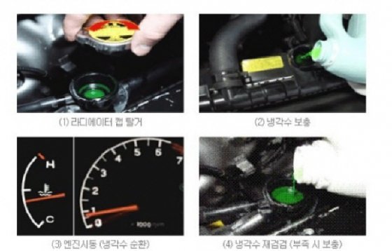 일반적으로 냉각수는 잘 얼지 않는 에틸렌클리콜과 물이 혼합돼 어는 점이 영하 20-30도 정도지만 요즘 같은 혹한기에는 빙점을 더 낮춰주는 게 좋다. 특히 중부 일부 지역의 기온이 영하 20도 이하로 내려가면서 냉각수가 어는 경우가 생겨 운전자들의 각별한 주의가 요망된다.