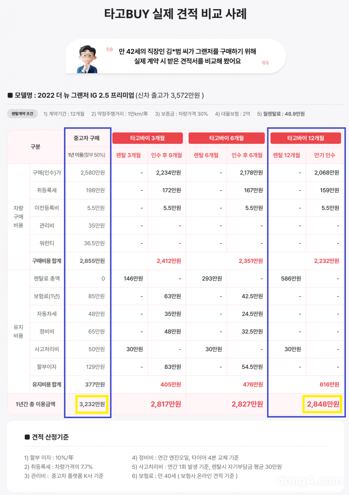 이에 따라 타고바이는 중고차 시세 대비 평균 10%가량 저렴한 가격으로 고객에게 제공한다. 특히 차량 연식 기준을 기존 3년 미만에서 최대 5년까지 확대하며 폭 넓은 중고차 선택을 가능하도록 했다. 타고바이는 고객 선호가 높은 현대자동차 그랜저 100대를 한정으로 운영한다. 고객 반응과 시장 상황을 살피고 점차 확장할 방침이다.