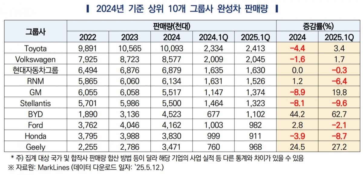 현대차그룹은 163만대를 판매하며 3위를 지켰다. 토요타(241만3000대), 폭스바겐(204만5000대)에 이어 글로벌 빅3를 유지했다.