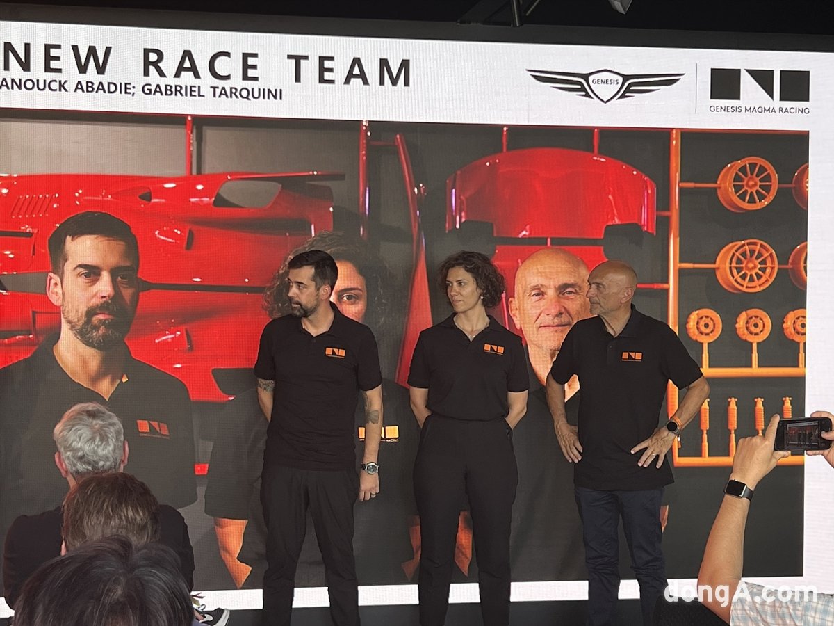 이번에 제네시스마그마레이싱에 새롭게 합류한 (왼쪽부터) 저스틴 테일러 GMR 최고엔지니어와 아누크 아바디 GMR 팀매니저, 가브리엘 타퀴니 GMR 스포츠디렉터.제네시스는 이날 제네시스 마그마레이싱을 이끌 핵심 운영진 3인도 소개했다. FIA 및 GT 내구레이스 관련 경험을 갖춘 아누크 아바디(Anouck Abadie)가 팀 매니저를 맡고 하이퍼카 LMDh 분야 경력을 지닌 저스틴 테일러(Justin Taylor)가 최고엔지니어다. 월드투어링카컵 챔피언 출신 가브리엘 타퀴니(Gabriele Tarquini)는 스포츠디렉터를 담당한다.