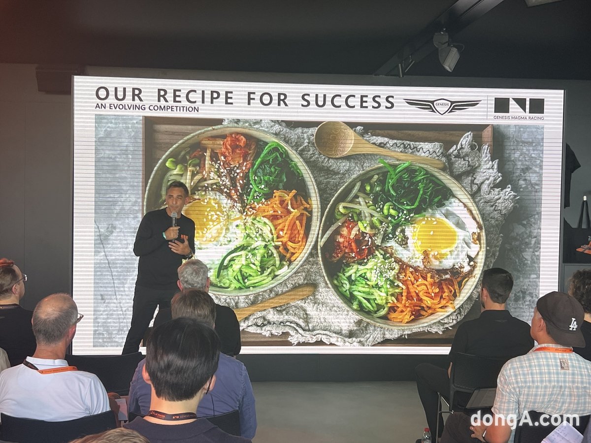 시릴 아비테불 현대모터스포츠법인장 겸 GMR 총감독이 제네시스마그마레이싱 ‘비빔밥 전략’을 소개하고 있다. 비빔밥처럼 최적 요소를 조합해 가장 한국적인 모터스포츠 브랜드로 육성한다는 취지다.차 성격과 기술 규정, 출전 목적 등에 따라 최상위 등급 하이퍼카클래스(레이스카 규정에 따라 LMH와 LMDh로 구분), 표준화된 섀시와 엔진으로 기계적 차이를 최소화한 프로토타입 차량들이 경쟁하는 LMP2클래스, 양산차 기반 고성능 스포츠카들이 출전하는 LMGT3(Le Mans Grand Touring 3) 등 총 3가지 클래스로 나뉜다. 올해 제네시스 마그마레이싱은 LMP2클래스 대회에 출전하고 있다.