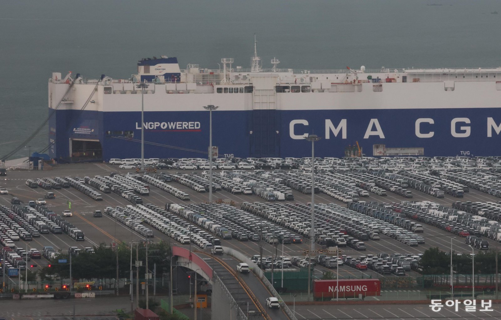미국 도널드 트럼프 행정부가 일본산 자동차에 대한 관세를 16일부터 27.5%에서 15%로 대폭 인하했다. 반면 관세 후속협상이 난항을 겪으면서 한국산 자동차는 여전히 25% 관세를 물고 있다. 16일 오후 경기 평택항 자동차 전용부두에 수출용 차량들이 선적을 기다리는 모습. 평택=전영한 기자 scoopjyh@donga.com한국 정부도 7월 30일 관세 협상을 타결하며 15% 자동차 품목 관세율에 합의했지만, 후속 협상에서 난항을 겪으며 실제 적용이 미뤄지고 있다. 트럼프 행정부의 25% 고율 관세에 신음하던 한국 자동차 업계는 ‘관세 역전’으로 일본 업체들과의 가격 경쟁에서 한층 불리한 위치에 놓이게 됐다.