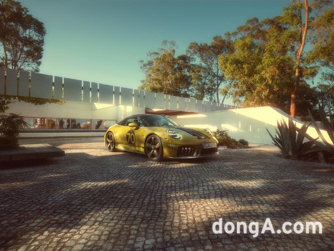 911 스피릿 70는 1970~80년대 초 감성을 담은 포르쉐 헤리티지 디자인 전략의 세 번째 모델이다. 포르쉐는 911 스피릿 70을 위해 녹색에 현대적인 감성을 더한 올리브 네오 색상을 개발했다. 리어 하단과 프런트, 휠 등에 적용된 그레이 골드 빛의 브론자이트 색상과 대비되며 조화를 이룬다. 보닛 위 스트라이프, 클래식 포르쉐 엠블럼, 트렁크 리드의 배지 등이 눈길을 끈다.