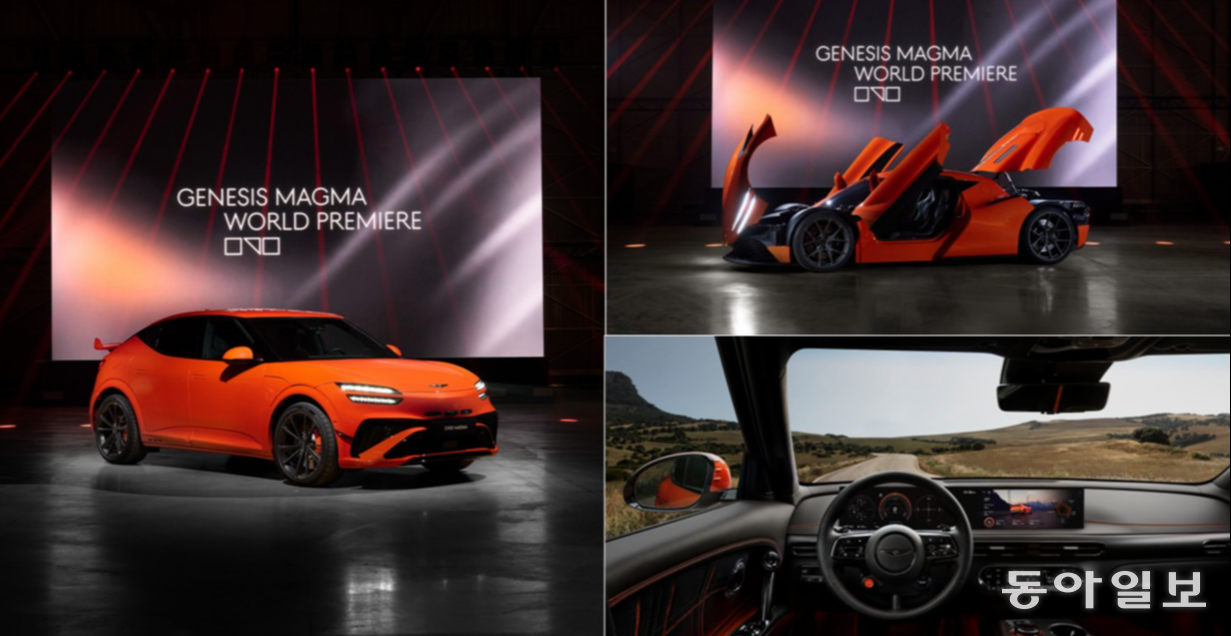 20일(현지시간) 프랑스 폴 리카르 서킷에서 열린 ‘마그마 월드 프리미어’ 행사에서 공개된 제네시스 첫 고성능 전기차 ‘GV60 마그마’ 내 외부 모습. 제네시스 제공제네시스가 20일(현지시간) 프랑스 폴 리카르 서킷에서 ‘마그마 월드 프리미어’ 행사를 열고 브랜드 첫 고성능 전기차 ‘GV60 마그마’를 공개했다. 2015년 출범 후 10년간 프리미엄 브랜드로 성장해 온 제네시스가 본격적으로 고성능차 시장에 진출하는 신호탄이다. 이 모델에는 미국·유럽 시장을 겨냥해 ‘럭셔리 고성능’ 영역으로 제네시스 브랜드를 확장하겠다는 전략이 담겼다는 평가다.