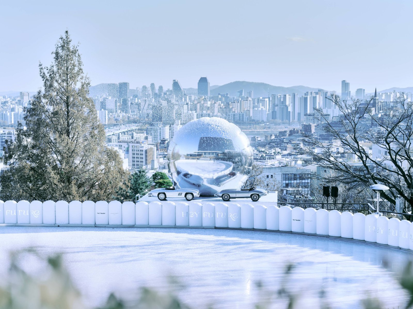 메인 공간인 야외 아이스링크는 하얀 푸퍼 펜스로 둘러싸여 환상적인 화이트 퓨처리스틱 무드가 느껴진다. 링크 밖에는 헤이딜러의 미래와 그랜드 하얏트 서울의 겨울이 만남을 상징하는 미니카 전시물이 설치돼 로맨틱한 분위기를 더한다.
