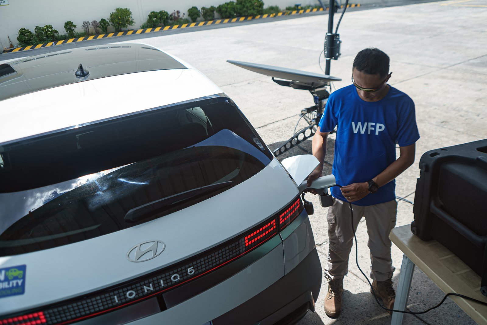 필리핀 ‘리본’ 지역에 단 하루 동안 569mm의 폭우가 쏟아진 지난해 10월 22일, 현장에 가장 먼저 급파된 사람들은 유엔 세계식량계획(WFP) 구호활동가들이었다. 그리고 이들의 이동 수단이 되고 때로는 전기가 끊긴 지역에서 전기를 공급해 준 것이 현대차의 ‘아이오닉 5’였다.
