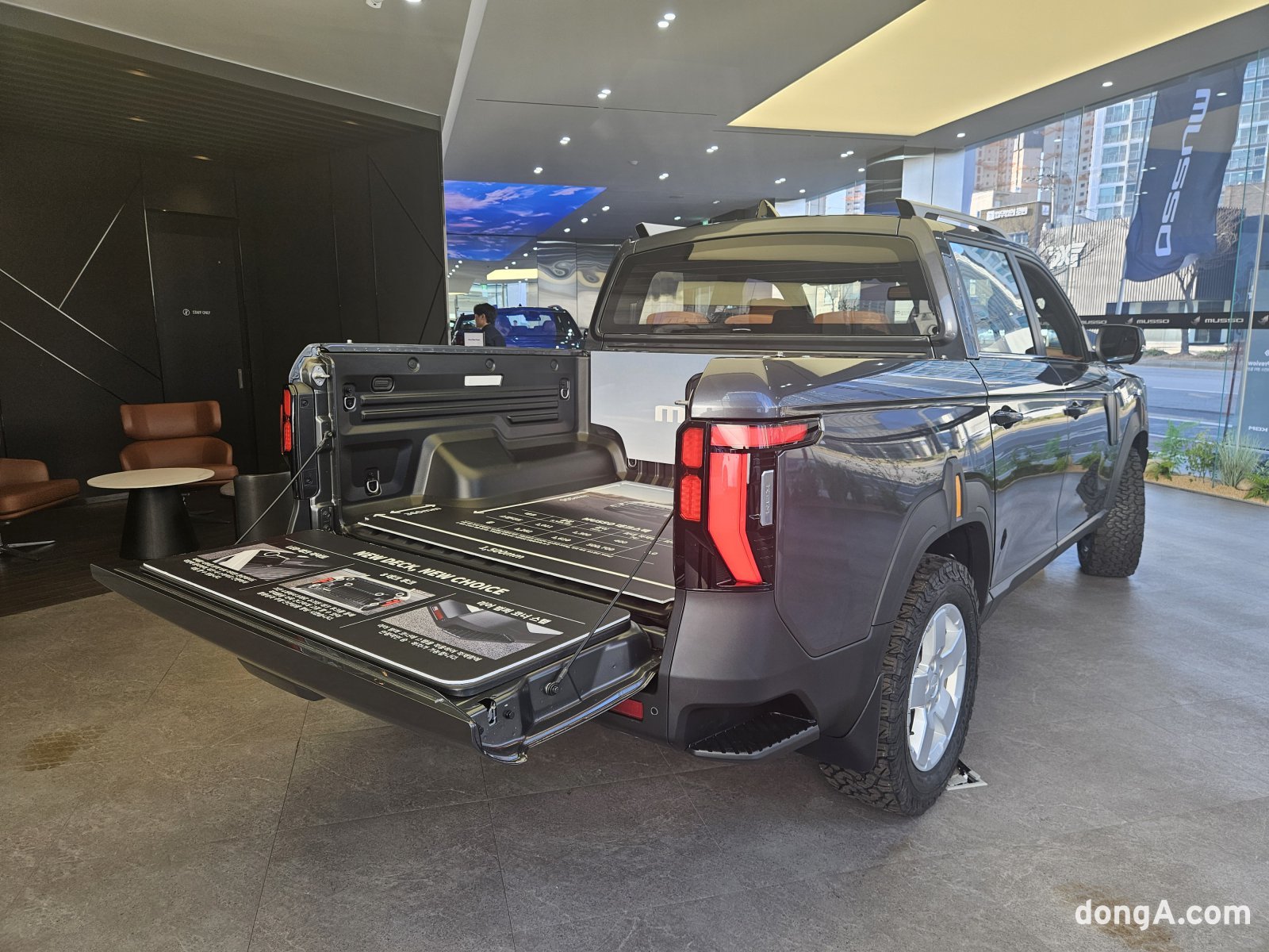측면부는 프론트와 리어 펜더를 따라 이어지는 역동적인 사이드 캐릭터 라인과 볼륨감으로 다이내믹한 이미지를 완성했다. 휠 아치 가니쉬는 산 정상을 형상화한 리플렉터를 적용해 KGM 픽업만의 시그니처 디자인을 표현한다.