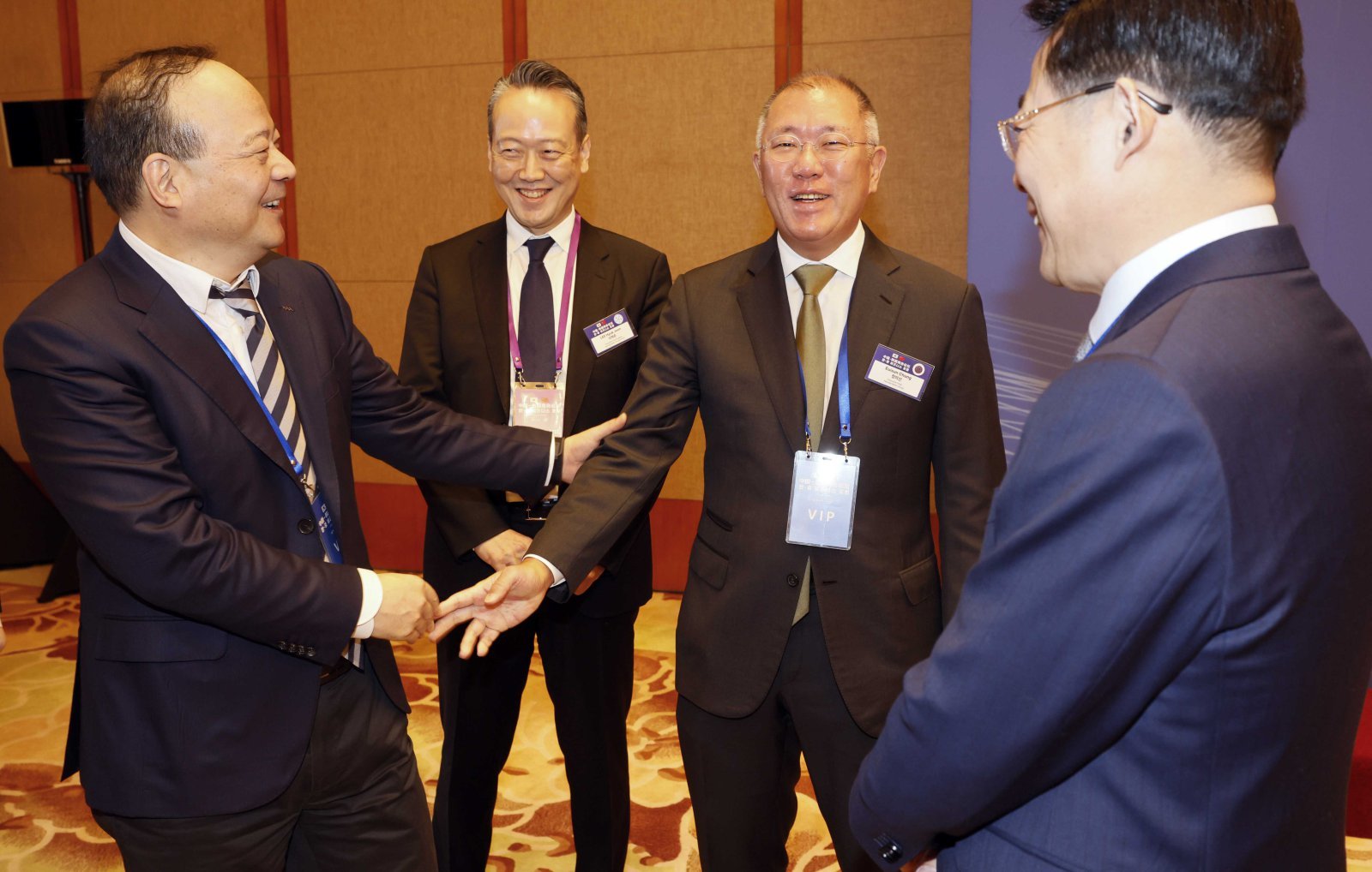 중국 측에서는 시진핑 중국 국가주석의 40년 지기 ‘경제 책사’로 알려진 허리펑 경제담당 부총리와 런홍빈 중국국제무역촉진위원회(CCPIT) 회장 등이 참석했다. 아울러 중국 배터리 기업인 닝더스다이(寧德時代·CATL) 정위친 회장과 통신장비 기업인 ZTE 쉬쯔양 회장, 전기차 기업인 SERES그룹 장정핑 회장, 자동차·에너지분야 장쑤위에다 그룹 장나이원 회장, 가전 기업인 TCL그룹 리둥성 회장, 류융 텐센트 부회장 등 주요기업 총수들도 배석했다.