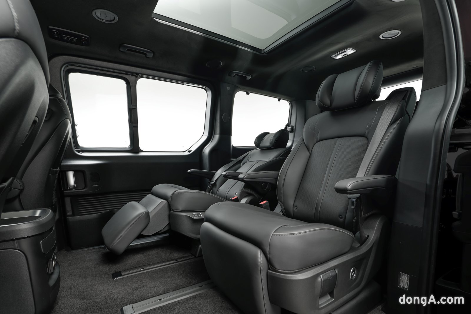 더 뉴 스타리아 EV의 외관은 전기차 전용 디자인 요소를 반영해 미래적이고 간결한 인상을 구현했다.전면부에는 수평형 연속 LED 주간주행등(DRL)이 적용돼 하이테크 감각을 살렸으며, 냉각 공기 흐름을 제어하는 외장형 액티브 에어 플랩(공기 유입 조절 장치)을 도입해 효율적인 온도 관리와 정제된 외형을 동시에 확보했다.