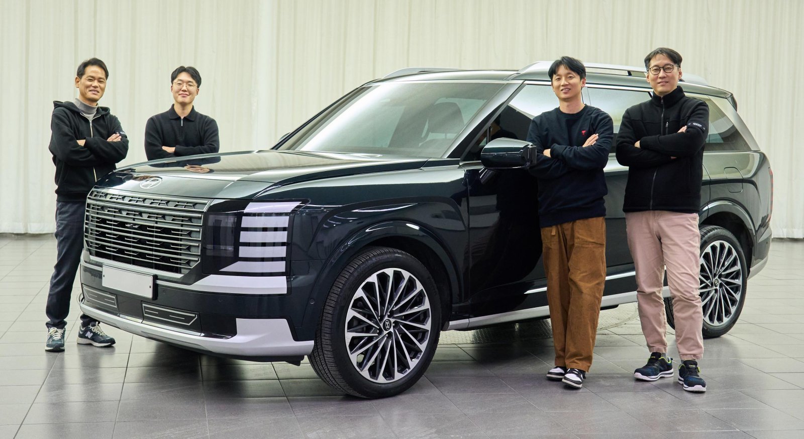 현대자동차 손병천 MLV프로젝트3팀 책임연구원, 정진영 MLV프로젝트3팀 연구원, 두광일 MLV전동화운전성시험팀 책임연구원, 유홍식 전동화구동설계팀 책임연구원(왼쪽부터)이 팰리세이드 하이브리드 앞에서 기념 촬영을 하고 있다. 출력을 기존 하이브리드 시스템 대비 90마력 높인 차세대 하이브리드 시스템이 ‘디 올 뉴 팰리세이드’에 처음 탑재됐다. 현대차그룹 제공최근 경기 화성시 남양읍 현대자동차그룹 남양연구소에서 만난 유홍식 현대차 전동화구동설계팀 책임연구원과 손병천 MLV프로젝트3팀 책임연구원은 최근 팰리세이드가 ‘북미 올해의 차’로 선정됐다는 소식을 듣고 이 같은 생각이 들었다고 말했다.
